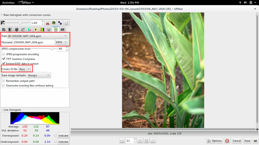 I’ve also been making sure that for the Create ID File, ALSO is selected, this creates a .ufraw file that UFRaw can read and your adjustments for this image are saved so that you can adjust them if needed (or just to remember what you did).