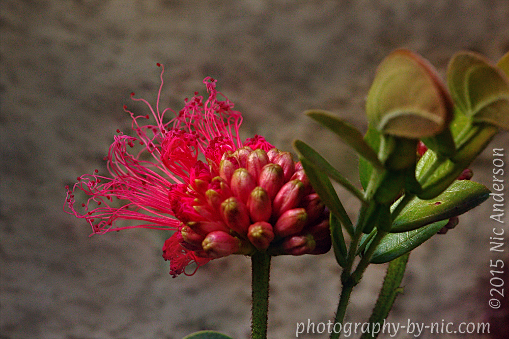 • Thanks, Mary! I really like flowers that uncurl and then pop out these little fringes. I think this one is called a pom-pom flower (Calliandra Haematocephala). In the Southern California area I have seen them in pink and red, as vines and as trees. 🙂