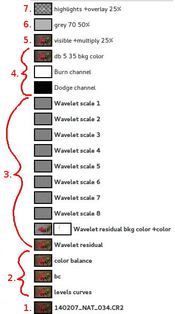 140207_NAT_034-edit-wc-metrixThere is very fine detail in the wavelet scales 1-5 (we will leave these layers alone), and large details in wavelet scales 6-8… the large details are where we are going to do the most work.  As you can see, in order to make changes to the texture of the background wavelet scales 7&8 are going to make the biggest differences.