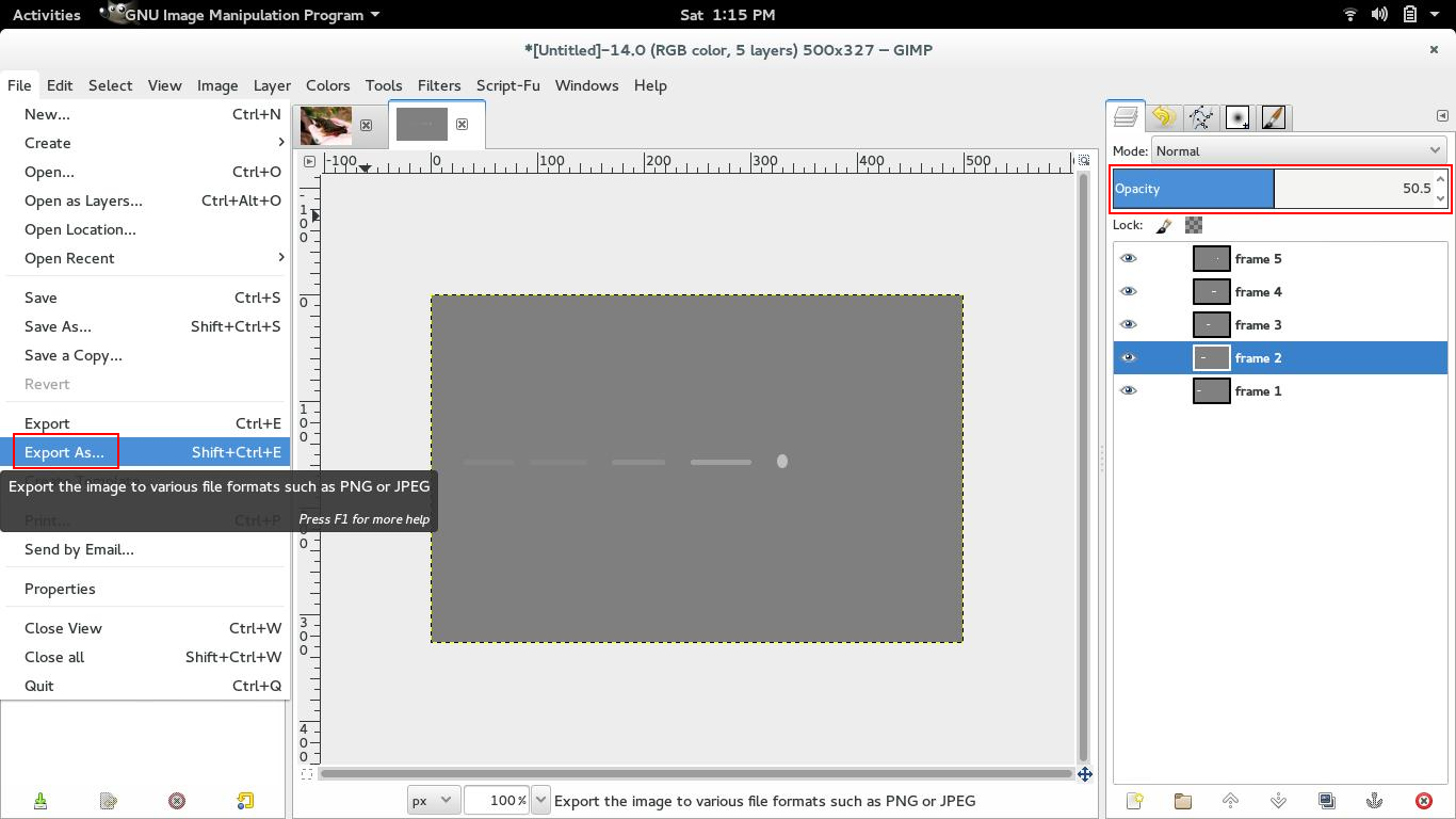 Once you have all your layers (frames), go to File->Export As (seen in previous image).
