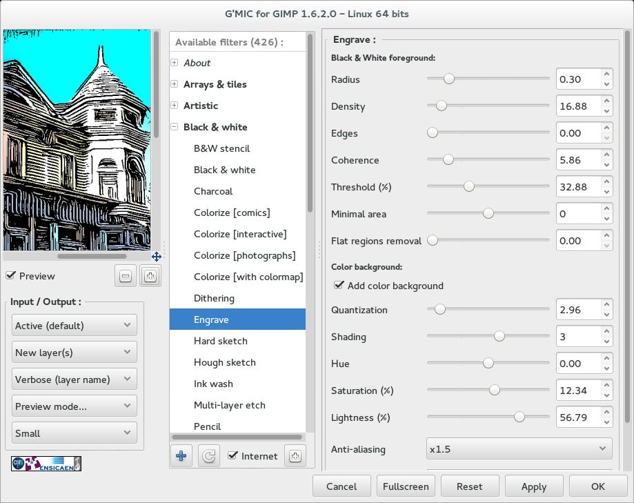 9. I had recently read about a new filter added to G’MIC Plug-In called Engrave [Filters->G’MIC->Black & White->Engrave] and I wanted to try it out (I wrote about this filter here).  I saved my image as a .jpg [File->Export As] then brought up the .jpg image and resized it to 1000px long side so that the conversion wouldn’t take forever.