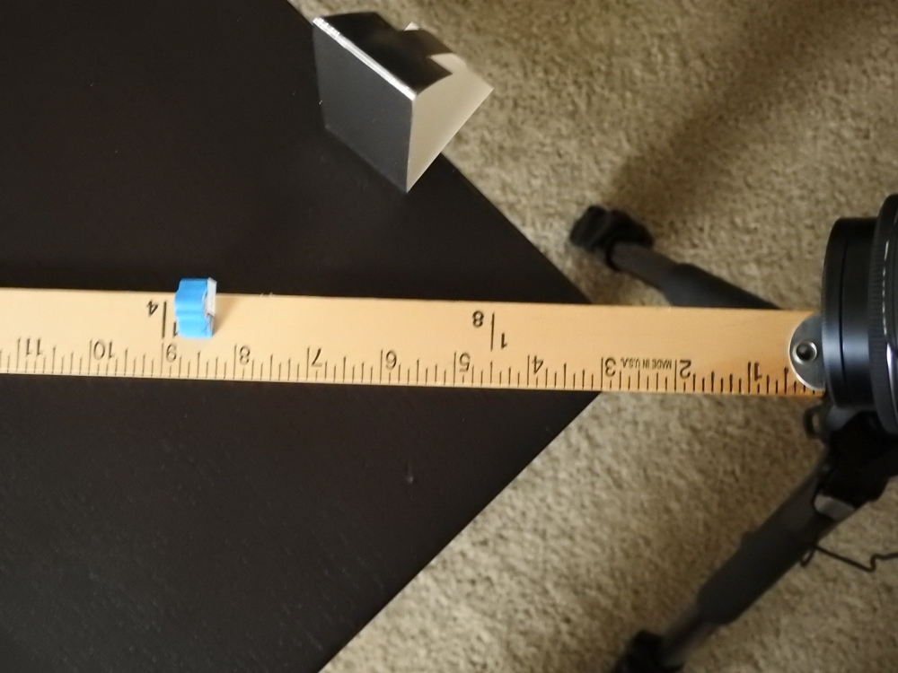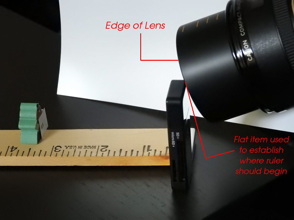 The end of the ruler was set at the edge of the lens…