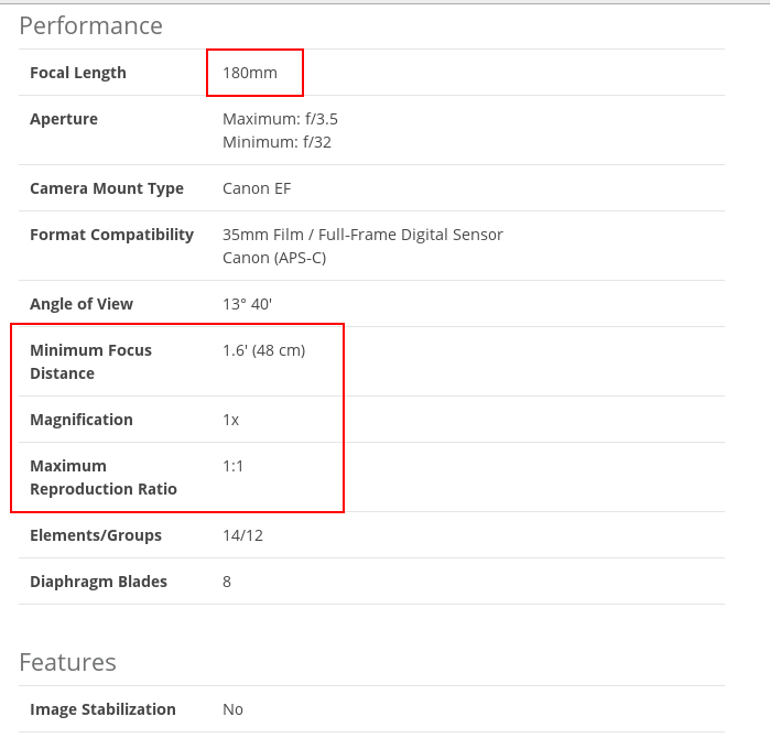 - Canon EF 180mm f/3.5L Macro USM Lens