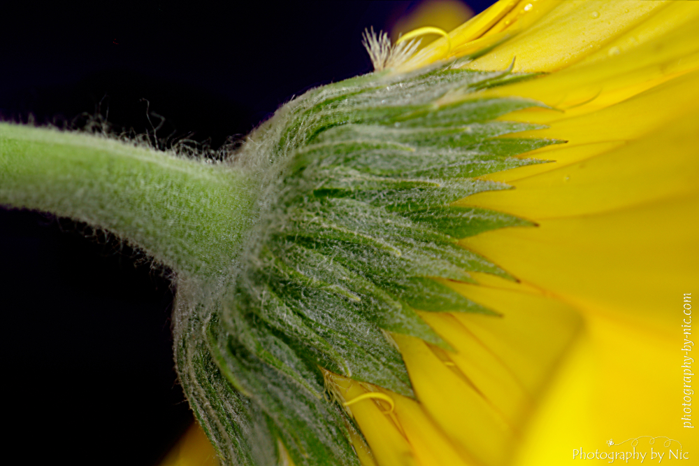 I know that normally when cut flowers start to droop, it is a sad time, but for me it was a great photo opportunity. This daisy started to droop and bend over the vase, but what I love most about this image is the little tuft on the edge of the petals and that little curl of petal.
