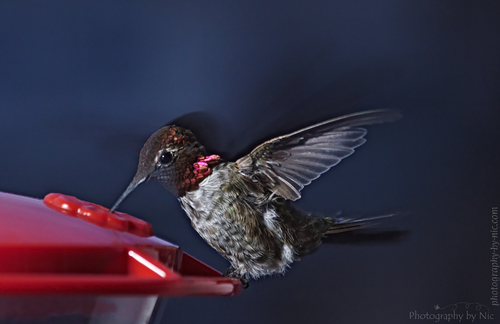 6. Lastly, I cropped my image to put the focus more on the hummingbird, because I wanted viewers to see all the details in those feathers… Giving me my final edit for week 1… 130623_NAT_020--gimp-c_LR1000-wm