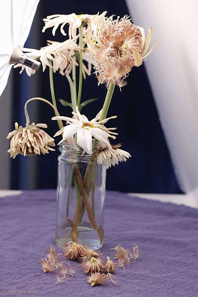 I accidentally bumped the table and some of the fluff came tumbling down on Saturday night, I decided to take a few shots with artificial light in case it was all dried out by Sunday morning… I also decided to take photos with three different lenses of the same parts just to give it a different view.