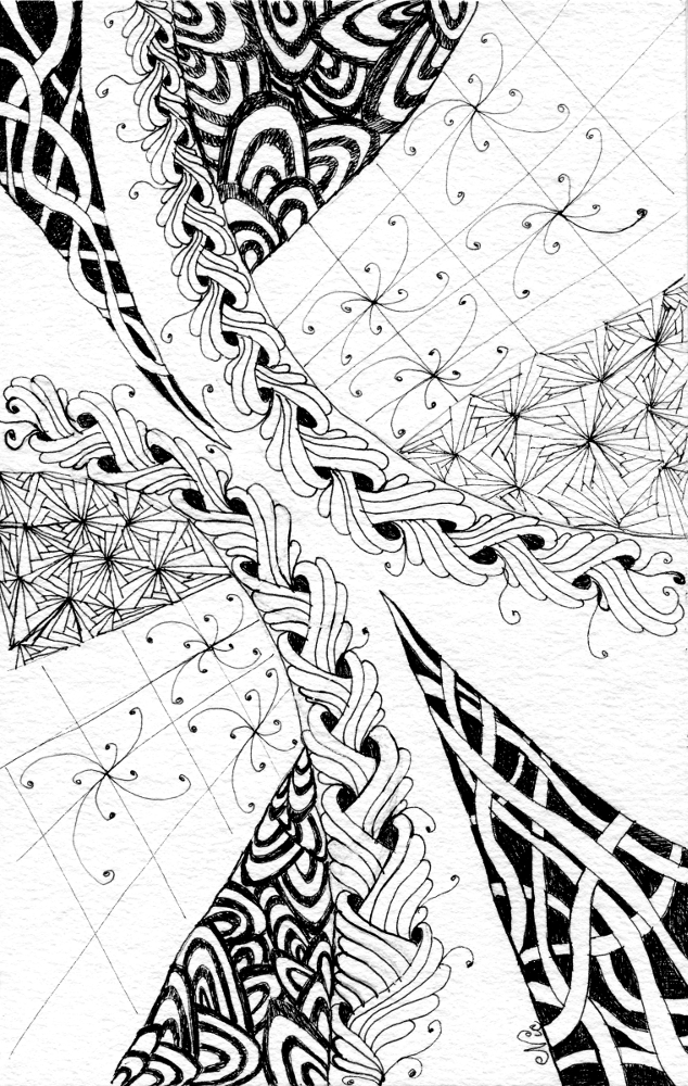 I created this zentangle a few weeks ago, but I got distracted and forgot to post it after I scanned it. Enjoy…