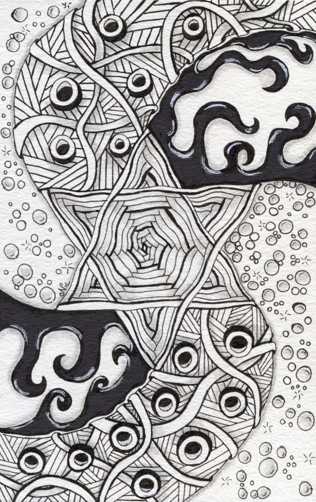 Tangle patterns used: Auraknot, Hollibaugh, Sucker, bubbles, tentacles, and a cross-hatching of sorts.