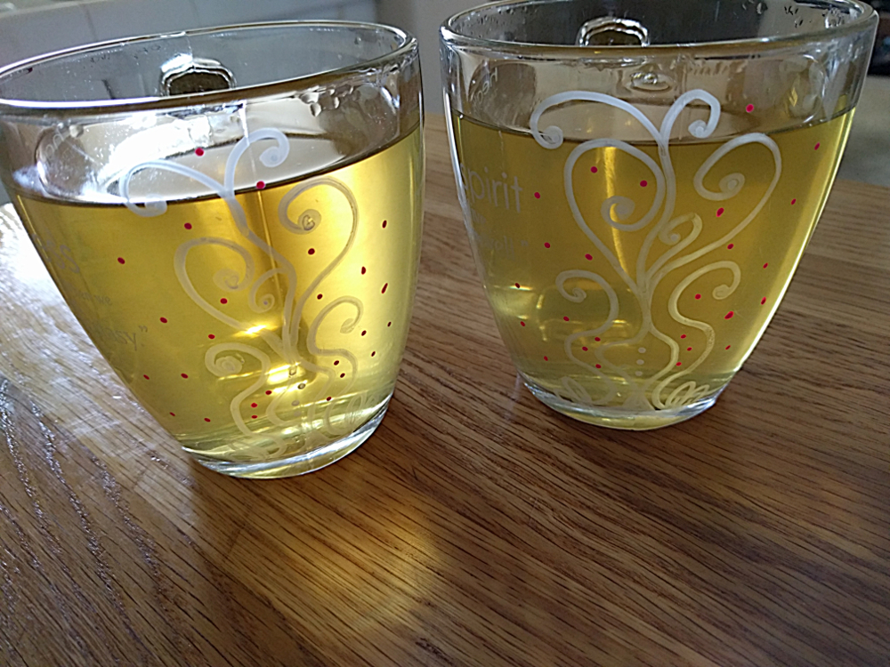 My husband said, “the plant has grown and there is pollen!  yesterday it was green and smaller 😀 “… it occurred to me this morning that I could draw on the section of the cup between the etchings to have more space to tangle (pattern: E’rutats)…