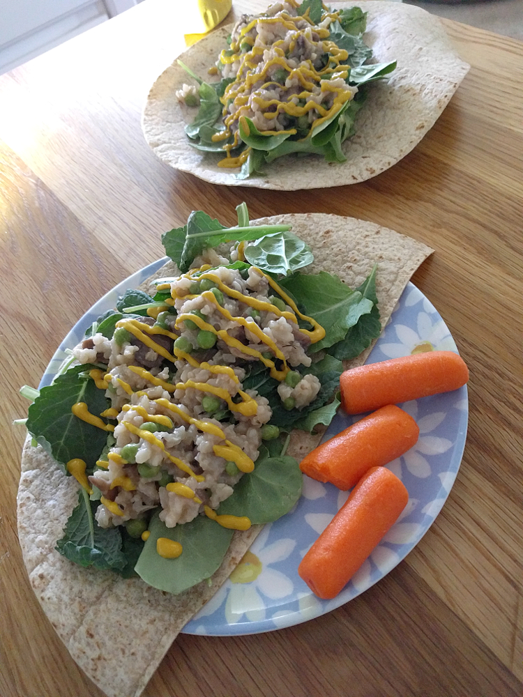 IMG_20160824_124136–gimp_LR1000 Published August 26, 2016 at 750 × 1000 in Week Three Check-in (perspective)… ← Previous Next → Mushroom risotto w/ baby kale & spinach on a flour tortilla with yellow mustard