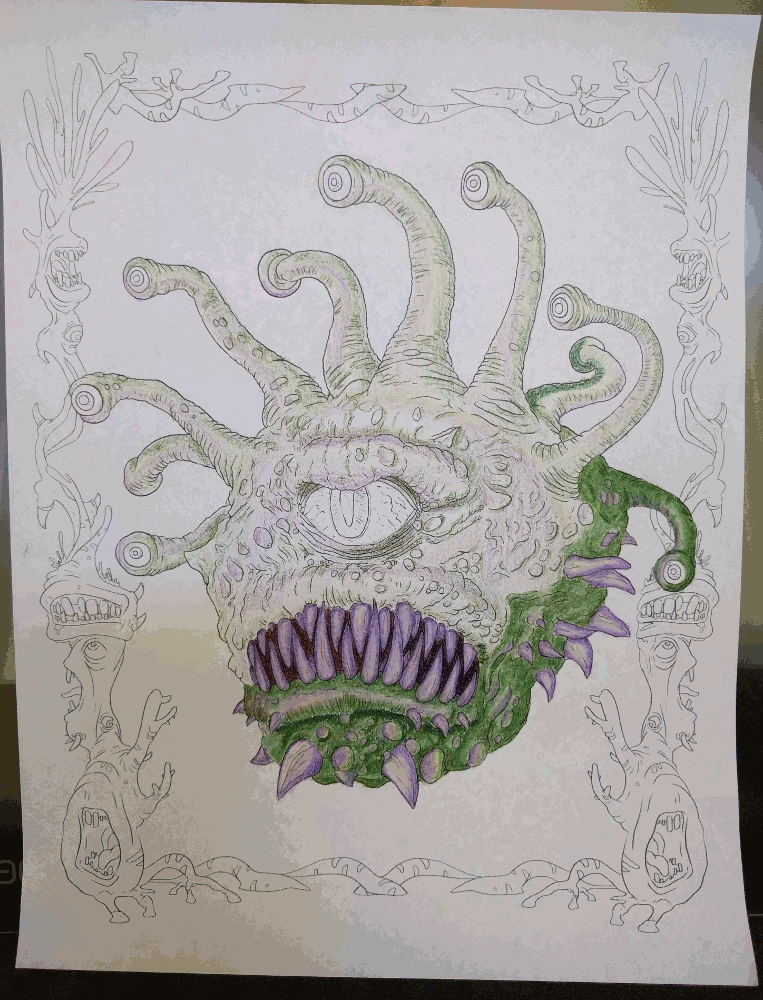 For the last 5 days I’ve been working on a Beholder… See, my husband bought me a coloring book… a really cool coloring book…
