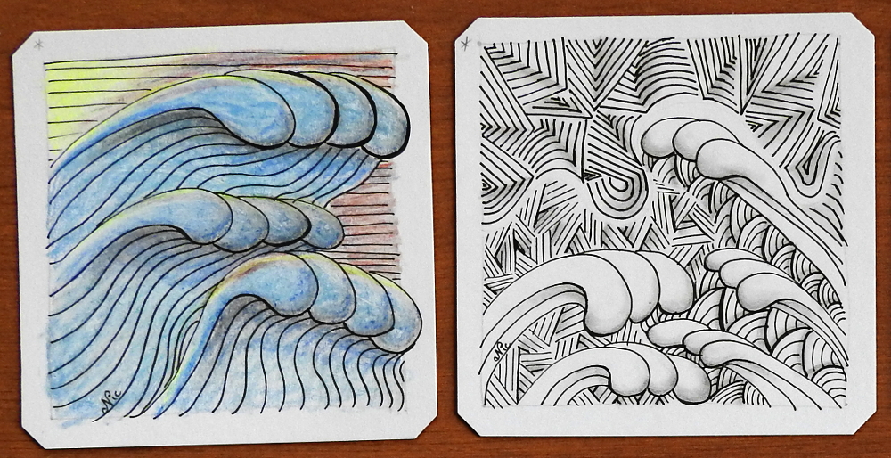 This week’s I am the Diva Weekly Challenge #296 is a pattern by Anya Ipsen, CZT called Moowa.  It is a combo of Mooka and waves, according to Anya… so I had waves on my mind when I was tangling it…