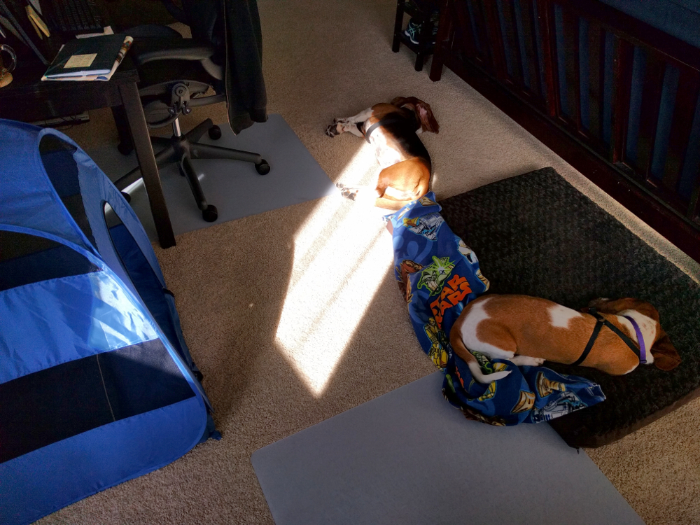 IMG_20170619_085537-5_LR1000 Published June 23, 2017 at 1000 × 750 in With a dog bed here, And a dog bed there… ← Previous Next → Tent #1, big brown bed