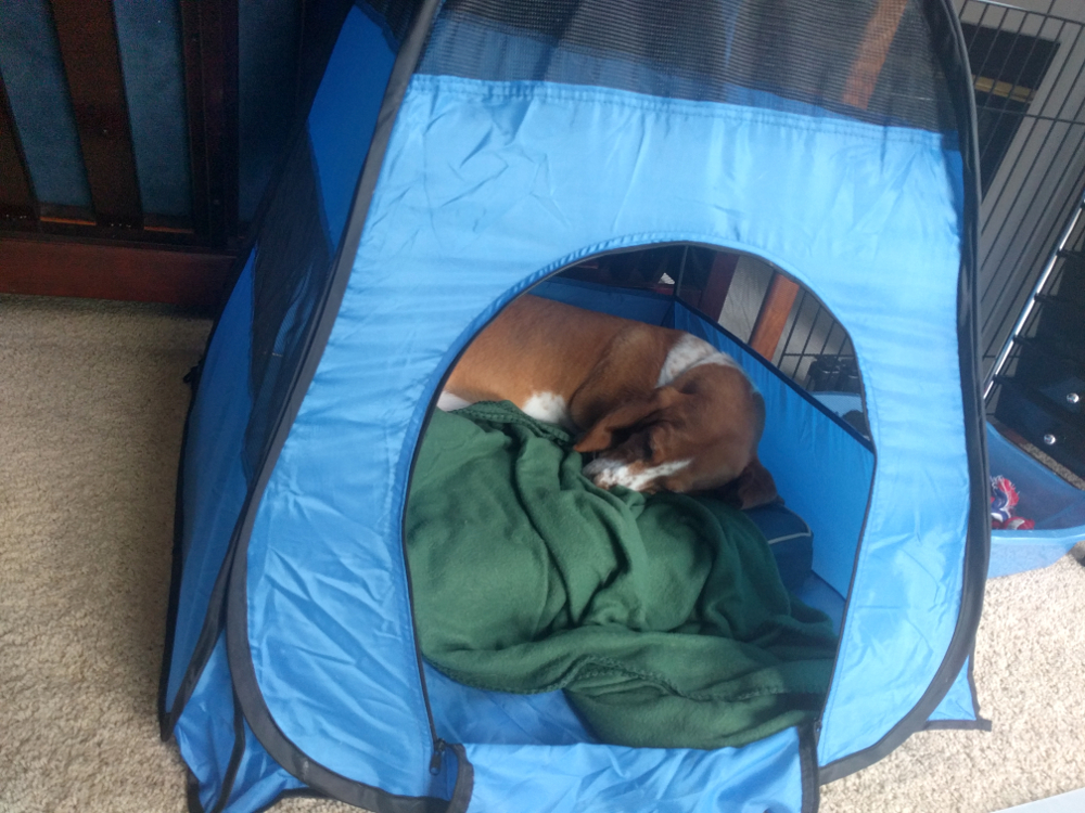 170915_PUP_110613_LR1000 Published September 15, 2017 at 1000 × 750 in Pupdate… ← Previous Penny after 3rd injection in tent