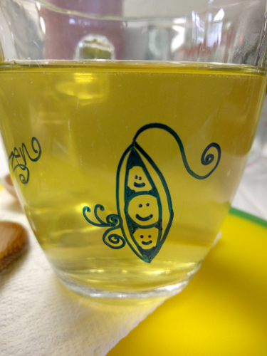 Since I was spending as much time as possible getting back to reading the novel I didn’t do any art, except the occasional tea mug in the mornings. Nor did I take many photos of the pups… my friend commented that a lot of the pup photos are of them sleeping. It’s not easy taking photos of them when they are moving around as you need both hands, but I was able to capture this cute encounter by enticing them with a treat to look at the camera. 😀