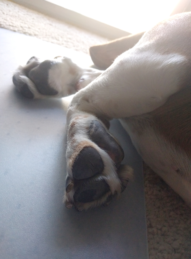The pups are insanely cute… but they like to put their faces and heads in odd places… Penny is leaning up against a cabinet, Duke is dangerously close to the wheels of the office chair…