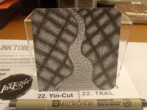 I was going for the Yin-Cut zentangle pattern being kinda like grass along the Trail… but it looks more like a psychedelic journey into nowhere land… which is cool too. 😀