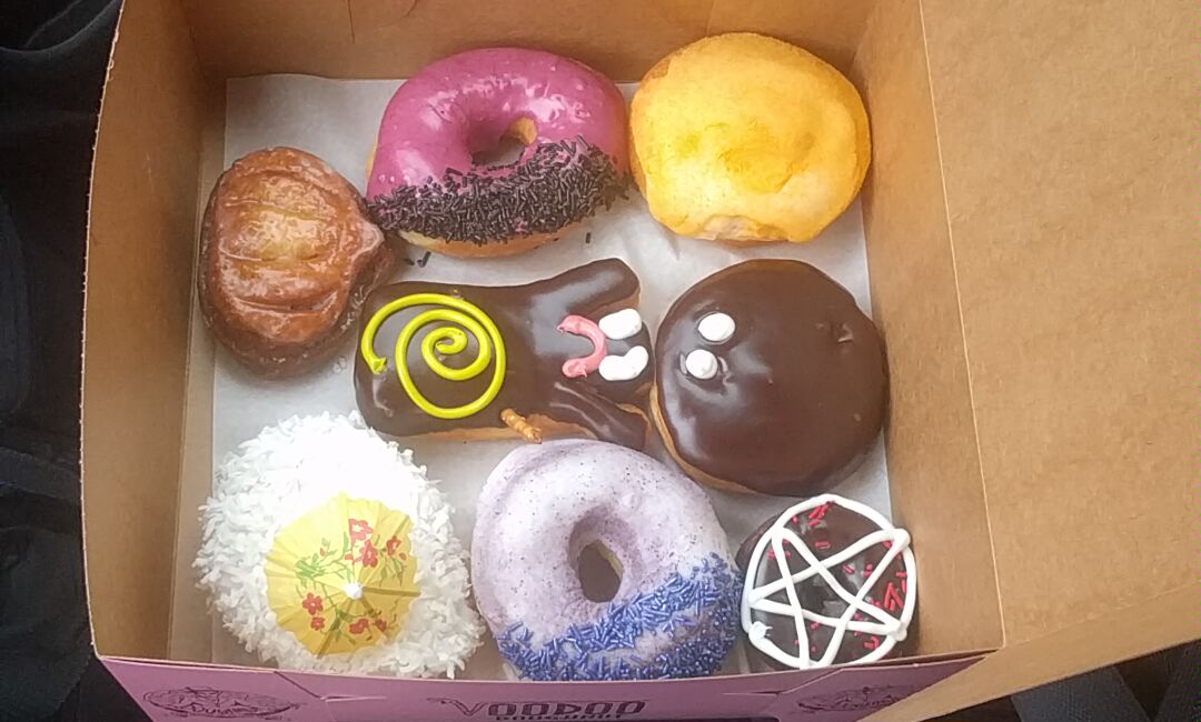 Soon after starting the 9 cups, my husband had to travel to Portland… and he was able to go to VooDoo Doughnuts AND bring them home on the plane! Woohoo! When my husband got home we would split a doughnut or two… unfortuneately, I was overly affected by all that sugar… I would be super hyper and then crash really hard… I missed my days of salads — haha 🙂 But was really pleased by the gift of voodoo doughnuts which I haven’t had in 3 or 4 years. 🙂