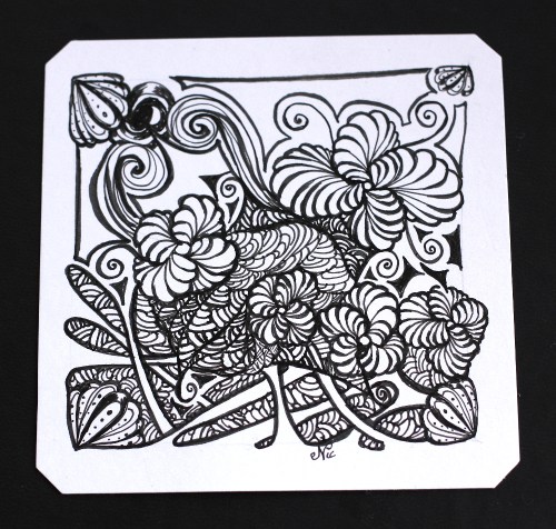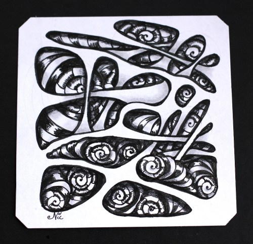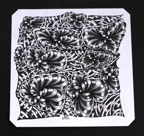 Waiting to hear my name called — March 7 — I couldn’t decide which pattern to do, and my patterns start to get small and my hand was hurting from holding the pen so tight.