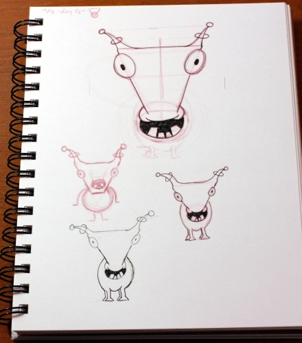 I drew a couple of monsters in my sketch book a few days back and today I was able to find a large block of time to add them in… sometime since my last post I also colored in the other monsters.