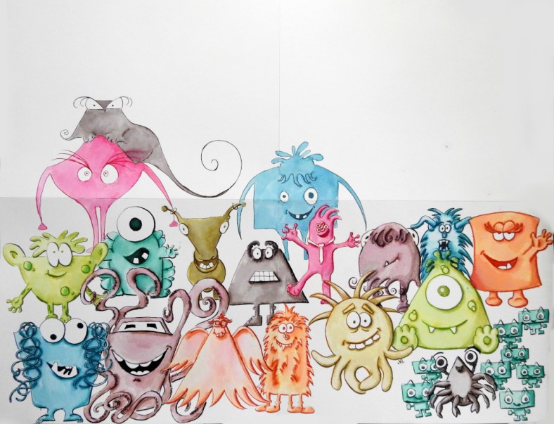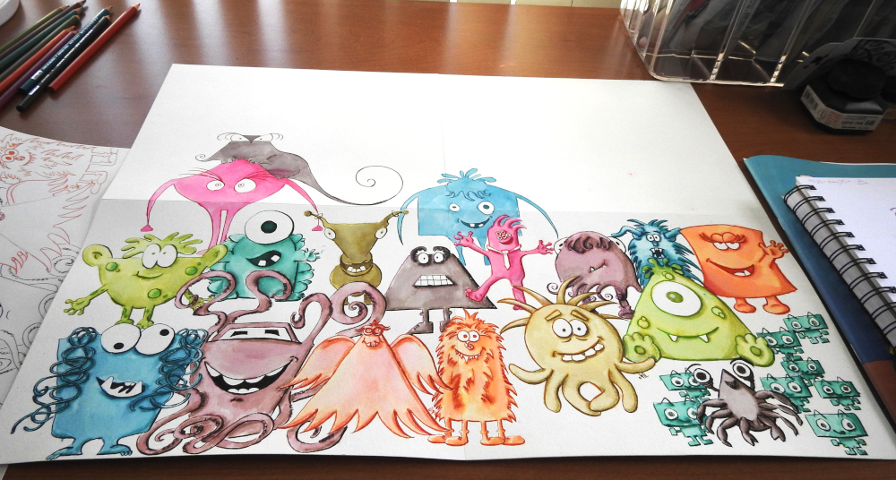I’m catching up with Inktober, I drew a couple more monsters in my sketchbook, and filled in a bit of color on the final page.