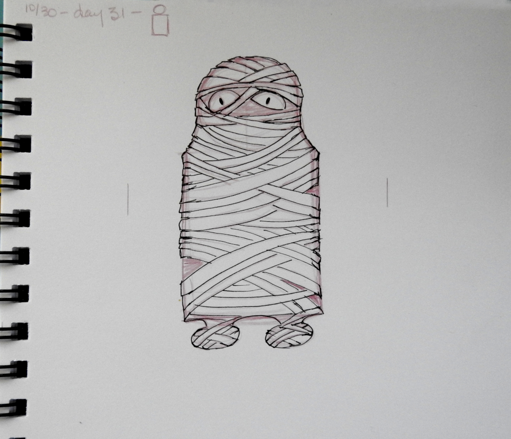 For Day 31 I thought the monster should be in the Halloween spirit… so it is a mummy 🙂 The shape is a circle and a rectangle…