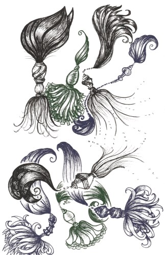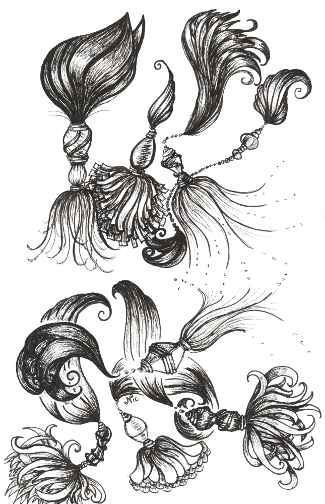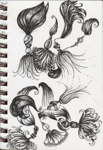 I took a short break from mini painting to draw again… I recently watched Eni Oken’s tassels video and decided to play around with those concepts.