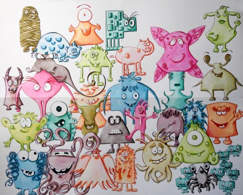 Last Inktober I played around with making monsters out of shapes… and ended up with 31 cute monsters (if I do say so myself)…