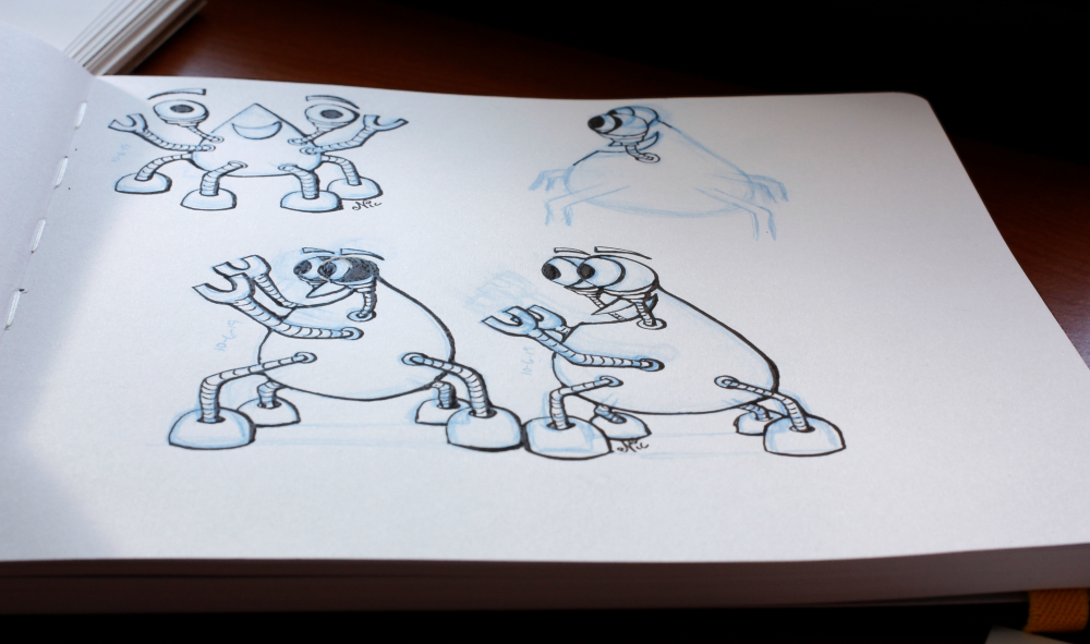 Last year, when I drew this monster, it didn’t go over well. I was thinking about sea crabs, and somehow my husband only saw a parasite, like a tick. I must have also been struggling for a candy-based name, because I also named it Tootsie Pop. ?!? Clearly the shape should have reminded me of a Hersey’s Kiss… but whatever, that was last year.