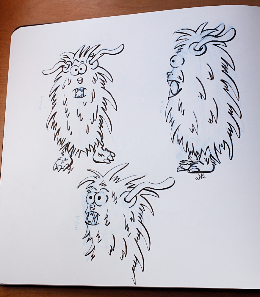 So this year I gave him feet. Also I played around with a side view, and then for sh*ts and giggles I tried my hand at a three-quarter angle using the Loomis method… I think from the side the bulging eyes and beady pupils makes him look like he might belong in the Simpson’s universe, haha. 🙂