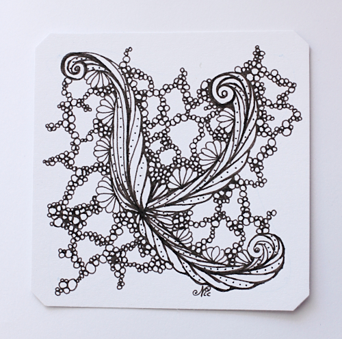 Ok… today I started out again with a little Zentangle warm-up and finished this tile… maybe I should add some shading…