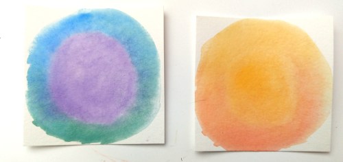After class, I decided to increase the watercolor intensity/saturation… I also prepped another tile with a different brand of watercolor paint…