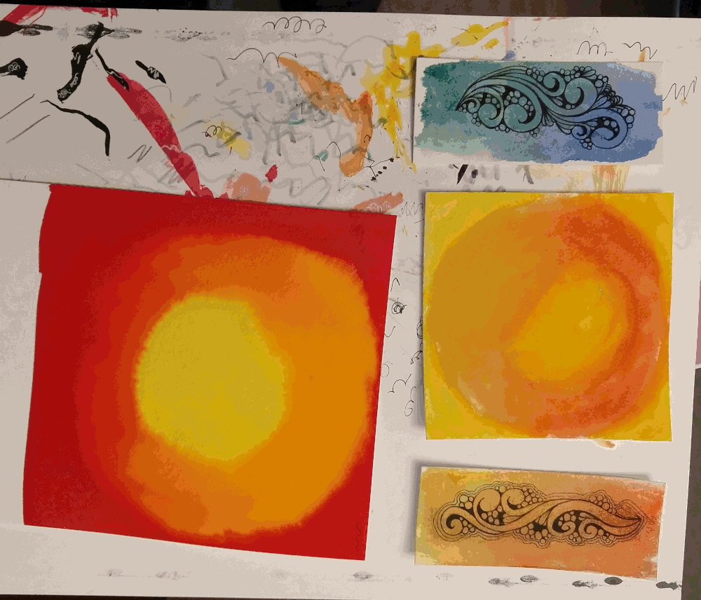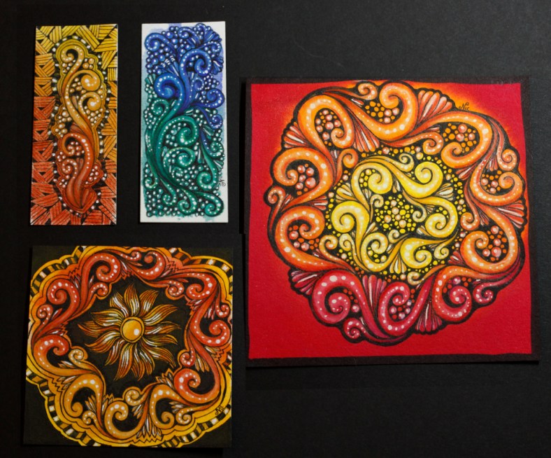 You may remember that I had prepped some other tiles with watercolors to play around with Elegan some more. I was able to find some time to finish them. I had a little bit of fun making this gif of the four pieces… Enjoy! 🙂