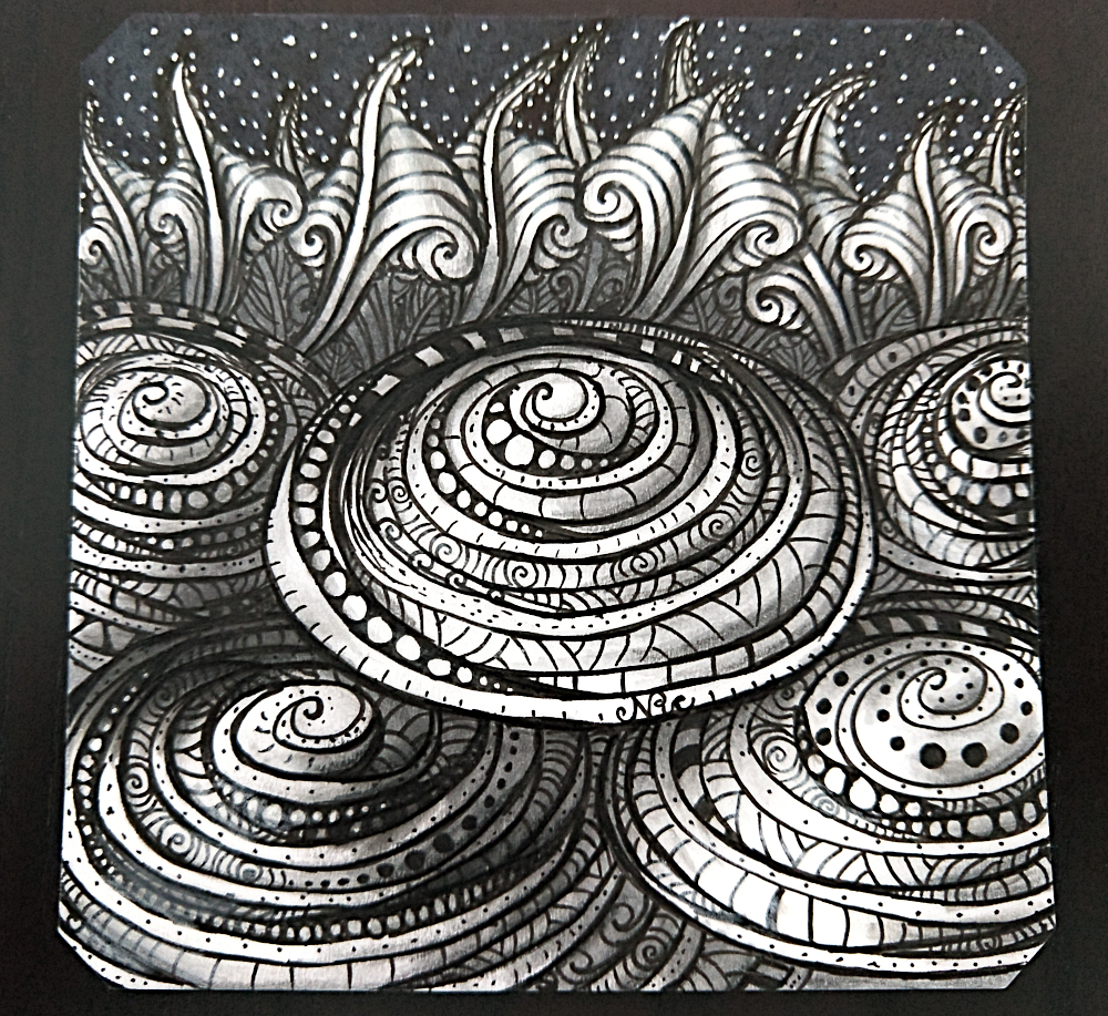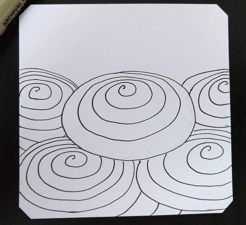 Sunday and Monday, I watched another Live Zentangle Class – 3D Printemps (I missed the actual class and watched the recording) and drew along with it… I made you a gif 🙂