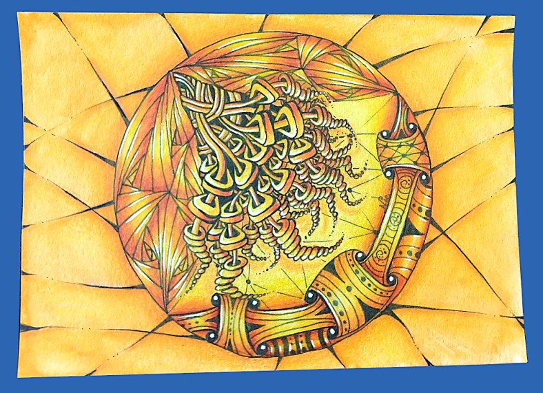 I drew another zendala, similar to this one, but this time I used water-soluble markers and colored pencils to give a bit of pizzazz! 🙂 (also I made you a gif)…