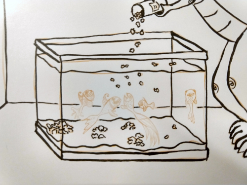 First, the initial idea with the prompt: Fish… Kevin CAN feed the fish!
