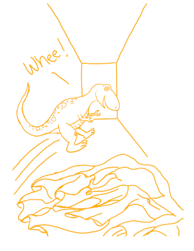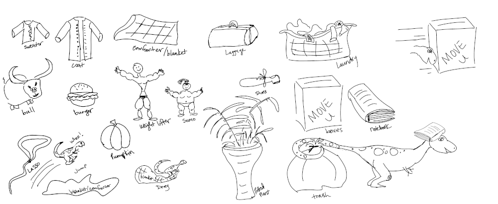 There were several good ideas, but I really liked jumping into a pile of bulky blankets. Here’s my concept sketch…
