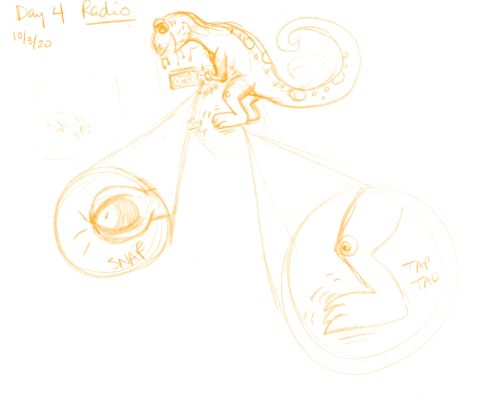 I had a specific idea I wanted to try for today’s Inktober prompt: Radio. I’m not sure where I’ve seen this before, most likely a comic, but I wanted to do this zooming in on an area by using a circle that kinda looks like a magnifying glass. I think I pulled it off pretty well.