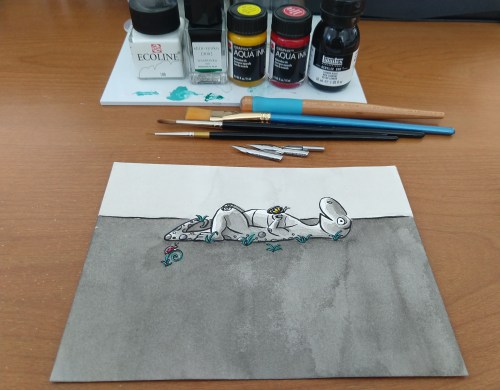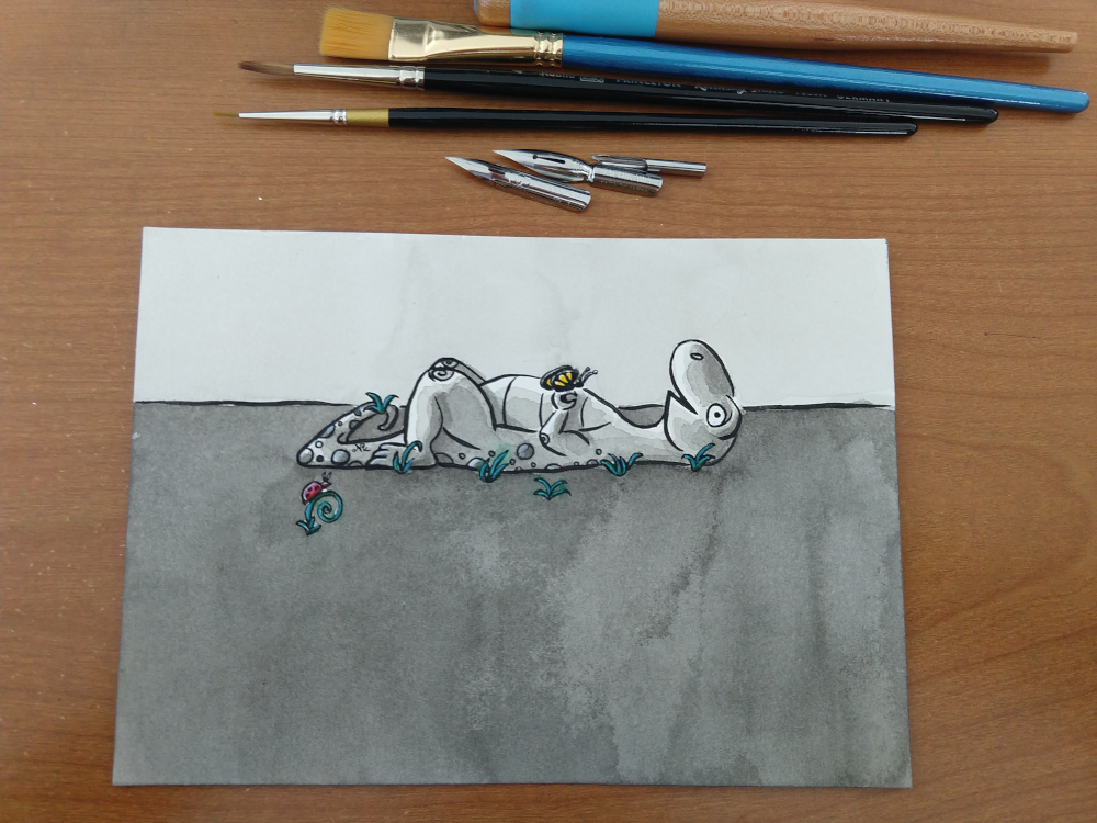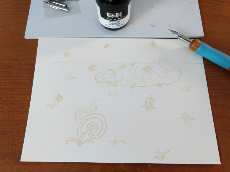 Last night my drawing was still wet, and not quite complete… so I thought I’ll do a touch up and then blog in the morning…