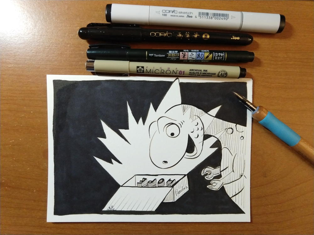 Today I worked on the Inktober prompt #10 – Hope. How do you draw Hope? I thought about Pandora’s Box… and I came up with this…