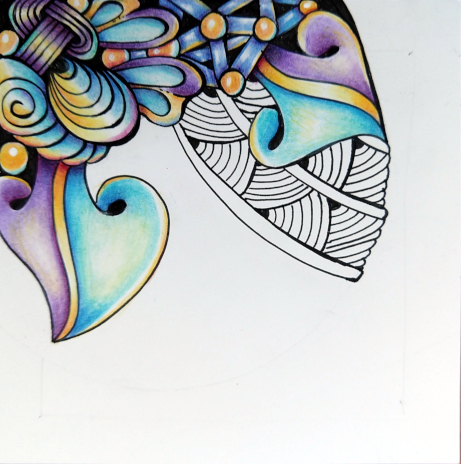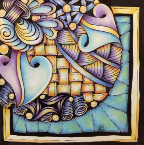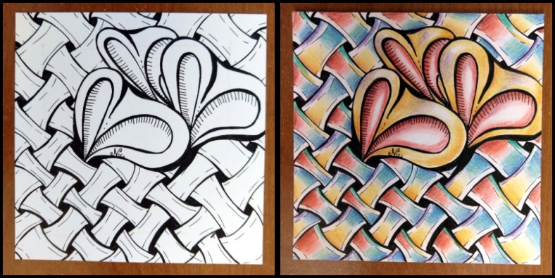 Again, I wanted to practice, so I drew the tangles from the above tile and colored them slightly differently…
