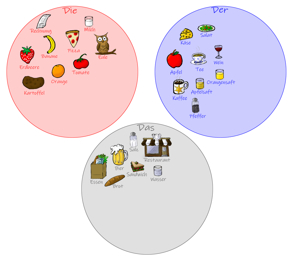 The day before my second vaccination shot, I had a migraine and laid down to take a nap. While napping I was thinking about Duolingo and how I was having trouble remembering the gender of the German words. Oddly, I’m doing ok remembering gender in Spanish because the endings of the words help me out. I started thinking about how children learn language, and how maybe I needed a children’s book in German. Then I thought about Richard Scarry‘s book and how I liked the images with the name of the item written underneath… I could do that. I could practice drawing while learning the gender of German words! After some soup and going to bed early so that we could get up early for our vaccination appointment, I once again fell asleep thinking about drawing and learning German. Once we got home from the vaccination appointment I started drawing… it helped me not think about how much my arm was hurting at the injection site. That night I had fever/chills, a headache, my neck muscles felt a bit stiff, and my skin hurt… basically the beginning stages of ConPlague (if you’ve ever gone to a conference like ComicCon, you know ConPlague)… or what other people refer to as the flu, I assume. I didn’t take any medicine because they said to wait so that you can build antibodies, I had a fitful sleep where I would wake up and drink water to cool off and then fall back to sleep. Finally in the morning about 24 hours after the injection time, I took some Excedrin for my headache. I started to feel much better about an half hour later, and went back to drawing. I continued to draw each day when I could, the headache returning and me trying to mitigate it. Yesterday, unfortunately, nothing I did would get rid of the headache, so I did not draw. And today, I still have the headache, but decided to blog instead of draw. Whew, that was long-winded… long story short here are some of the nouns I ‘know’ in German separated into gender…