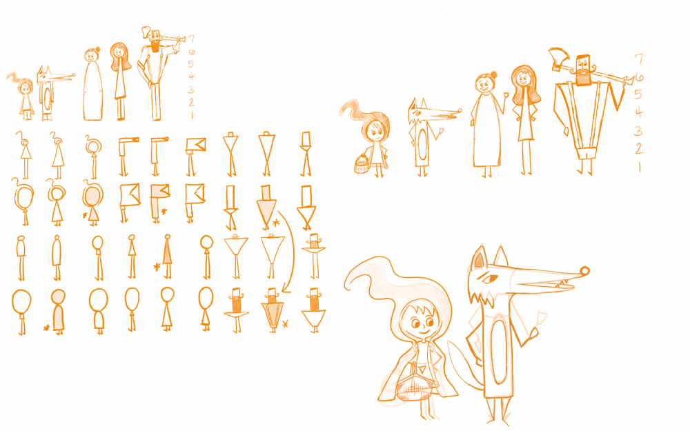 I chose Little Red Riding Hood, which meant I needed to figure out what Red, Wolf, Mom, Granny, and the Woodsman looked like. Here are my initial ideas, I’m still working on how they look in 3D…