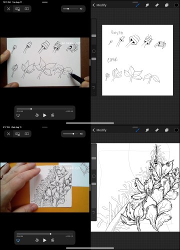 But I did start going through the Zentangle class videos (Organicize 3-part series) at my own pace on the couch on my ipad, using the side-by-side app function while I watched the video and used Procrate to practice.