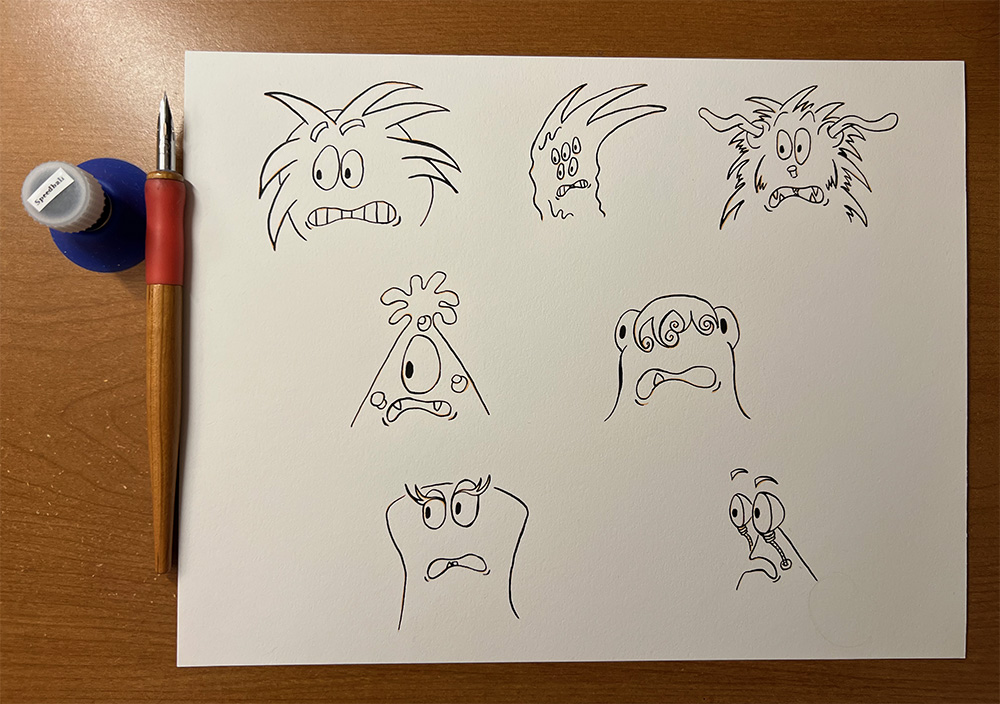 I put a quick watercolor on yesterday’s Happy Monsters, and WOW! it really gave them life!