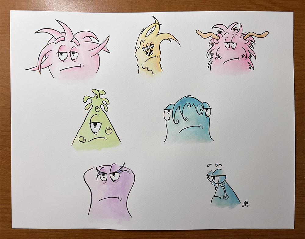 I’m having trouble translating the next expression to every face, so I’ve slowed down a bit more than I expected. I think I need to work on these a bit to get their personalities more…