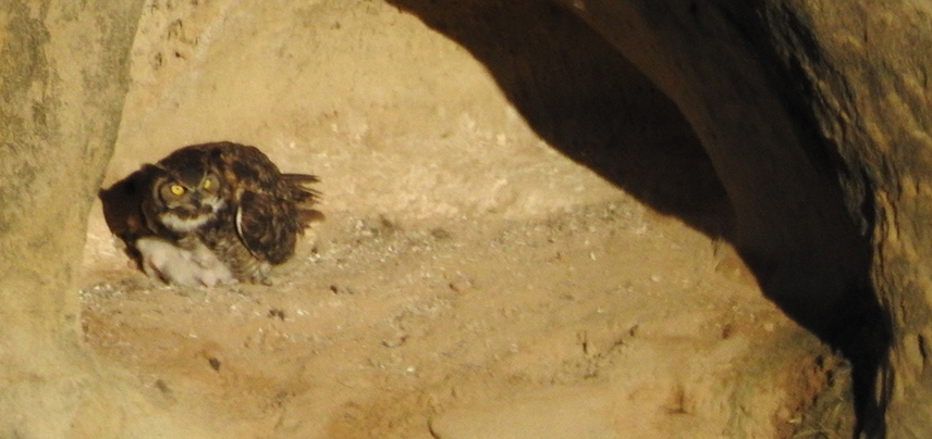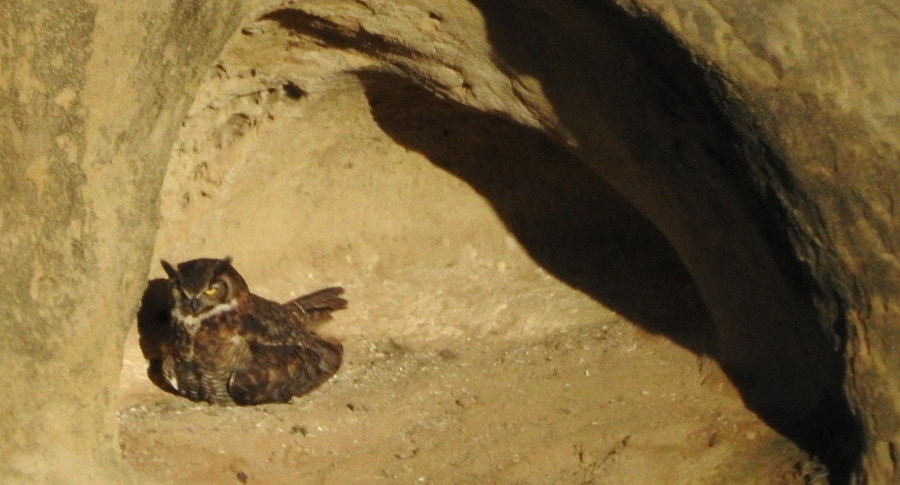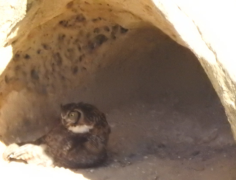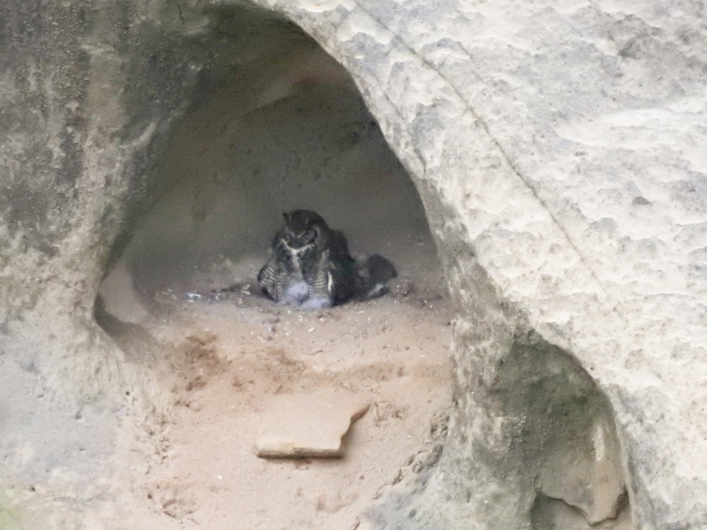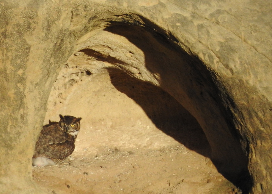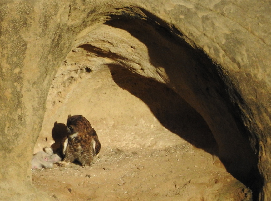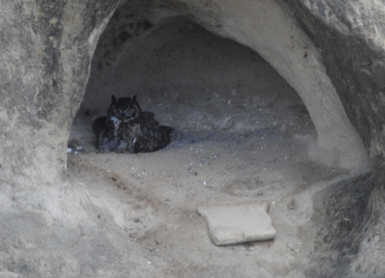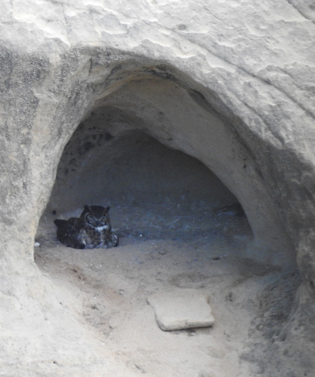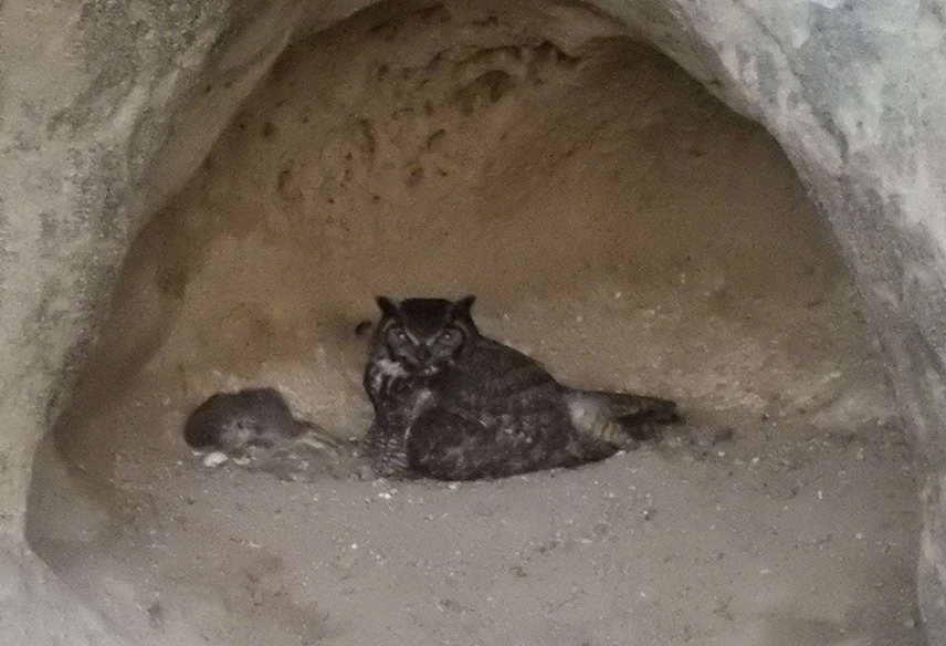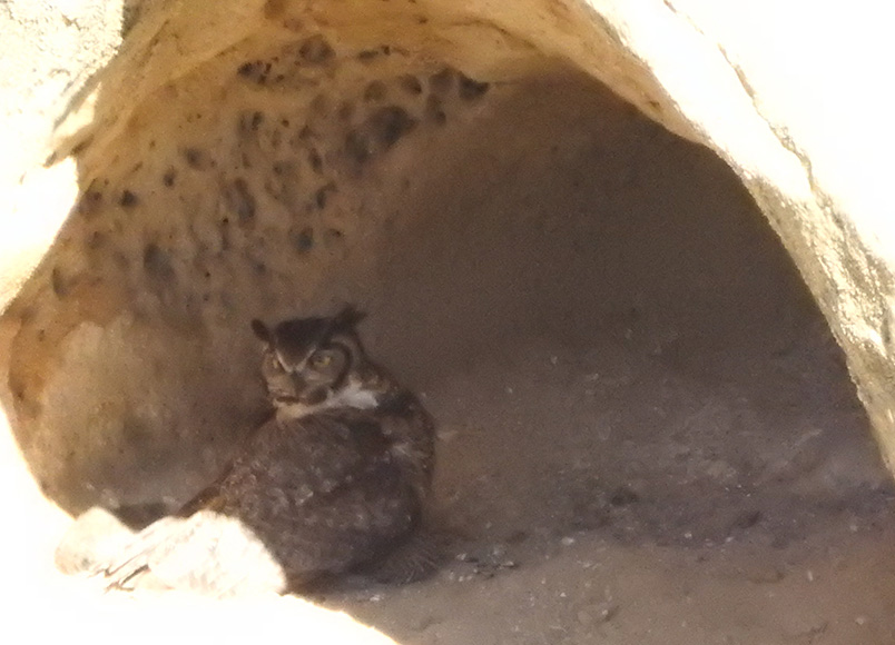 Then next time I could get a good photo, I swear I could see some legs off to the side of the cave, still wondering about my neighbor thinking it was a bobcat (Do bobcats and owls get along? Surely not…) … we started doing some research… we think she is a Great Horned Owl and those legs might be her lunch, a rabbit…