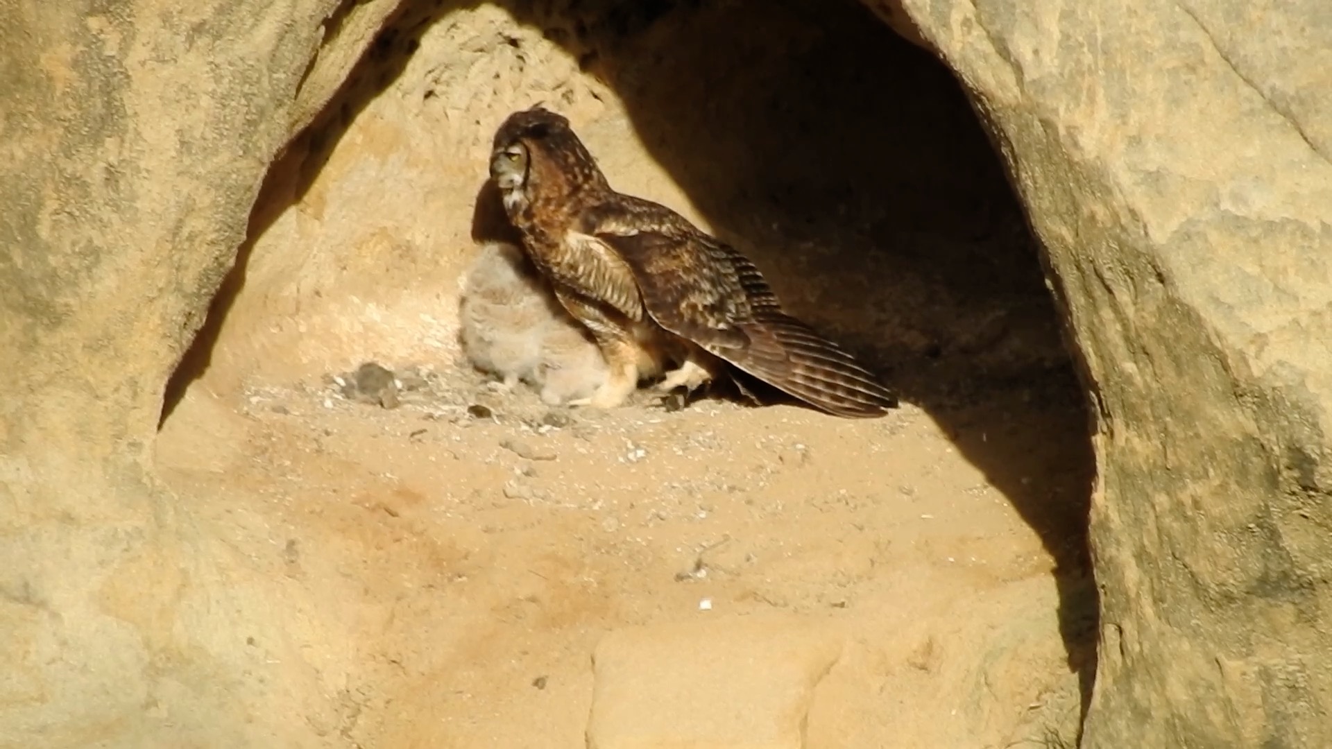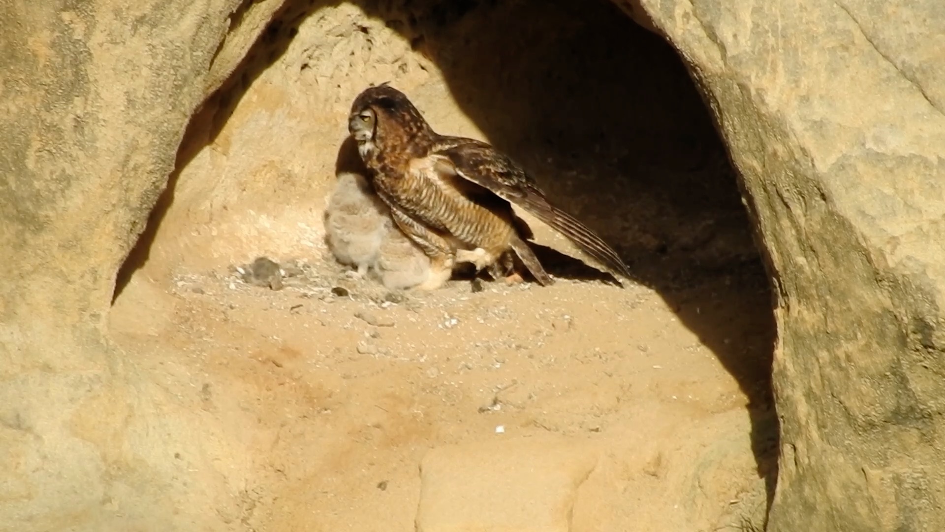 The last few days, I’ve been disappointed that I was mainly getting Mama Owl’s back, but after yesterday, I’m fine with that now. I think I will get my camera set up just a few minutes earlier, before feeding time, in the future. Great light is one thing, horrific imagery is another, heh.