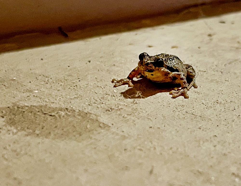 For months we have been hearing the frogs around here, but they have been elusive. A few nights ago (thanks to the rain, I think), this little guy was near my front door. We think they might be a Baja California Chorus Frog.