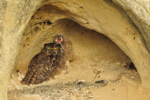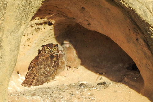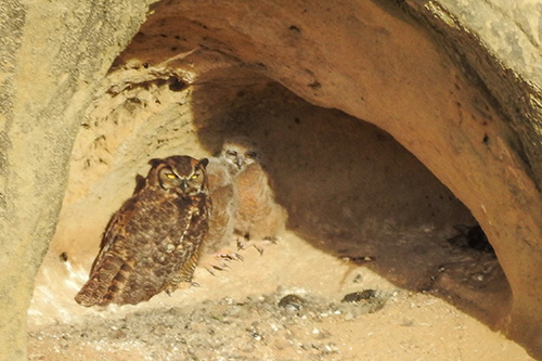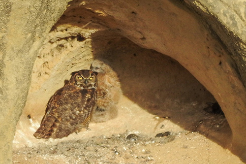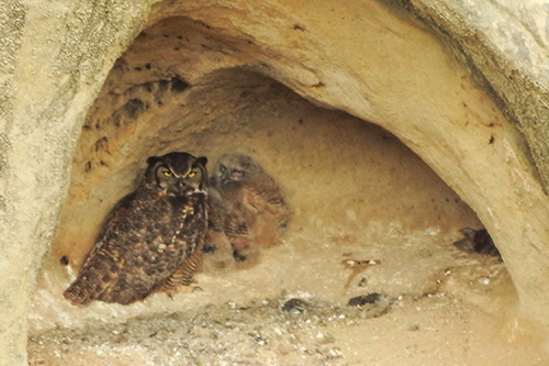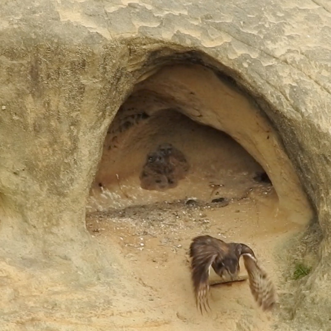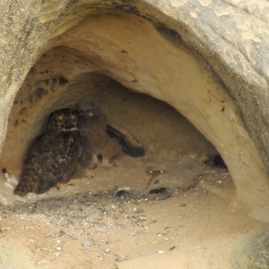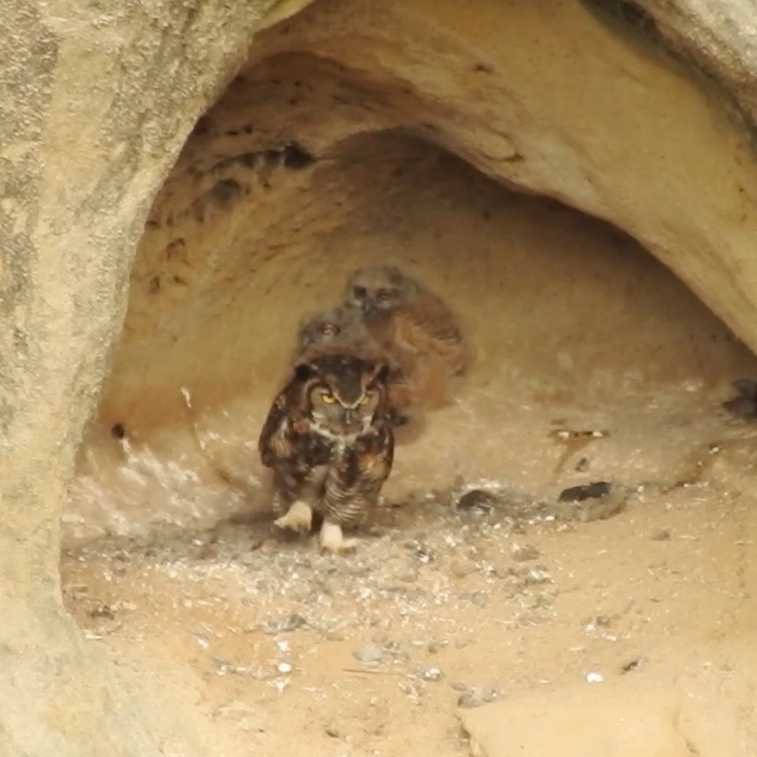 Hey guys, apparently Mama Owl is leaving the nest on occasion now. This time the owlets were not in the shadow but right in the middle of the cave in full view. Perhaps she’s teaching them independence while also showing them how to take off and land? I don’t know… but I suspect that any day now they will leave the cave.